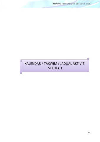 MANUAL PENGURUSAN SEKOLAH 2020 KALENDAR / TAKWIM / JADUAL AKTIVITI SEKOLAH 36