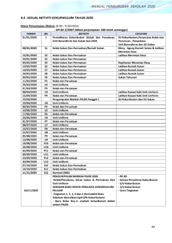 4.4 JADUAL AKTIVITI KOKURIKULUM TAHUN 2020
