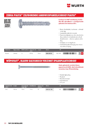 ZEBRA PIASTA ZELFBORENDE SANDWICHPANEELSCHROEF PIASTA ®
