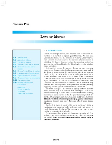 5.1 Introduction uniform motion needs the concept of velocity alone whereas