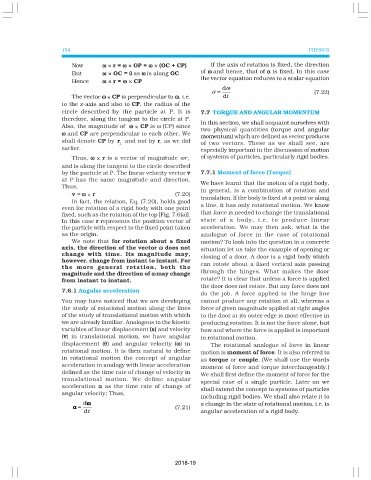 by the particle at P. The linear velocity vector v 7.7.1 Moment of force (Torque)