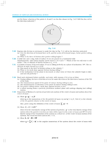 are the linear velocities of the points A, B and C on the disc shown in Fig. 7.41? Will the disc roll in