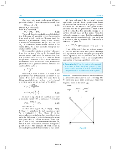 gravitation on a particle directed towards the t Example 8.3 Find the potential energy of