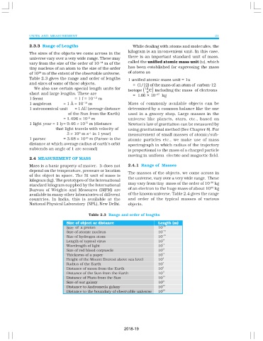 Table 2.3 gives the range and order of lengths 1 unified atomic mass unit = 1u