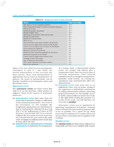 Table 2.5 Range and order of time intervals