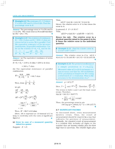 for (a) the relation R = R + R and for (b) t Example 2.11 Find the relative error in