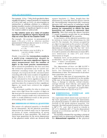 the least precise measurement) in intermediate 2.9 DIMENSIONAL FORMULAE AND