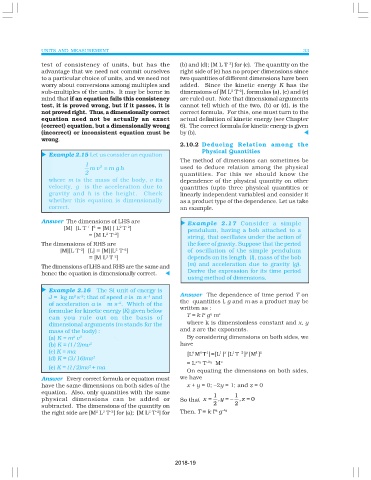 Example 2.15 Let us consider an equation Physical Quantities