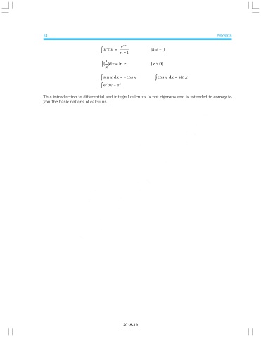 64 PHYSICS 1 ∫ ( ) x = ln x (x > ) 0 d x This introduction to differential and integral calculus is not rigorous and is intended to convey to you the basic notions of calculus. 2018-19