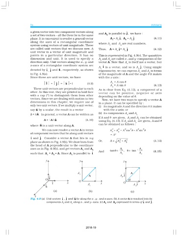are called unit vectors that we discuss now. A Thus, A = A i + A j (4.12)