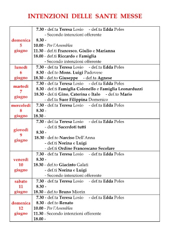 giugno 18.30 - def.ti Gino, Caterina e Italo - def.to Mario