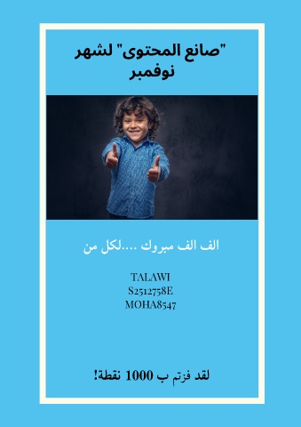 ﺮﻬﺸﻟ "ىﻮﺘﺤﻤﻟا ﻊﻧﺎﺻ" ﺮﺒﻤﻓﻮﻧ ﻦﻣ ﻞﻜﻟ.… كوﺮﺒﻣ ﻒﻟا ﻒﻟا TALAWI S2512758E MOHA8547 !ﺔﻄﻘﻧ 1000 ب ﻢﺗﺰﻓ ﺪﻘﻟ
