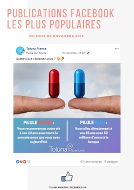 publications Facebook les plus populaires D U M O I S D E N O V E M B R E 2 0 1 8 TOLUNA MAGAZINE / DÉCEMBRE 2018