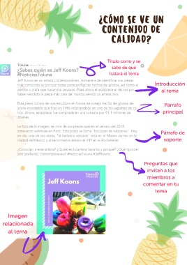 ¿CÓMO SE VE UN CONTENIDO DE CALIDAD? Título corto y se sabe de qué tratará el tema Introducción al tema Párrafo principal Párrafo de soporte Preguntas que invitan a los miembros a comentar en tu tema Imagen relacionada al tema