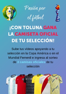 Pasión por el fútbol ¡CON TOLUNA GANA LA CAMISETA OFICIAL DE TU SELECCIÓN! Sube tus vídeos apoyando a tu selección en la Copa América o en el Mundial Femenil e ingresa al sorteo de 3 camisas oficiales de tu selección