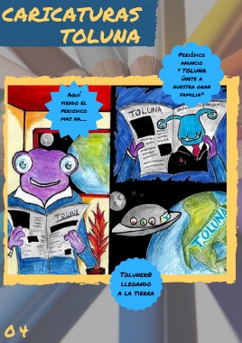 CARICATURAS TOLUNA Periódico anuncio " TOLUNA únete a nuestra gran Aquí familia" viendo el periodico mas na..... Toluner@ llegando a la tierra 0 4