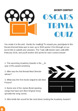 Oscars-themed trivia quiz to earn up to 3000 points! Click through on our