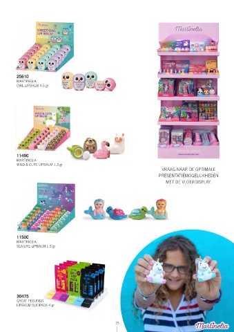 25610 MARTINELIA OWL LIPBALM 4.5 gr 1149C MARTINELIA WILD & CUTE LIPBALM 1.3 gr VRAAG NAAR DE OPTIMALE PRESENTATIEMOGELIJKHEDEN MET DE VLOERDISPLAY. 1150C MARTINELIA SEA LIFE LIPBALM 1.3 gr 30475 GREAT FEELINGS LIPBALM DUOPACK 4 gr 14 15