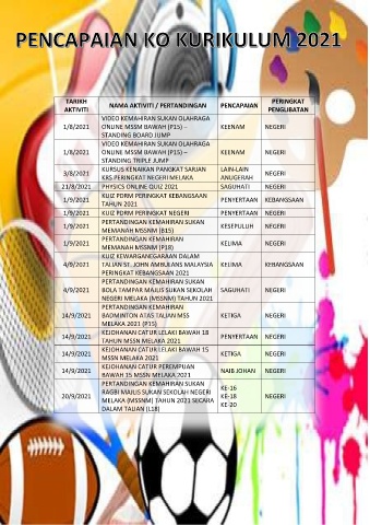 TARIKH NAMA AKTIVITI / PERTANDINGAN PENCAPAIAN PERINGKAT