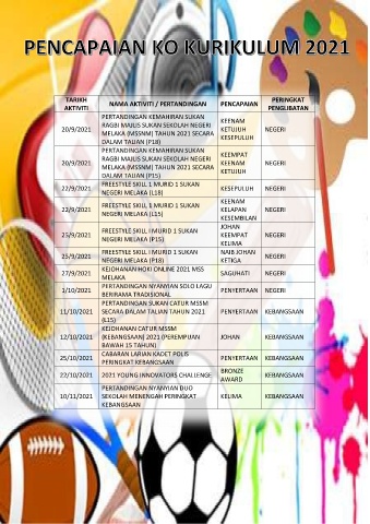 TARIKH NAMA AKTIVITI / PERTANDINGAN PENCAPAIAN PERINGKAT