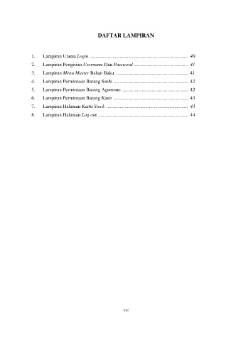 5. Lampiran Permintaan Barang Agemono ...................................................... 42