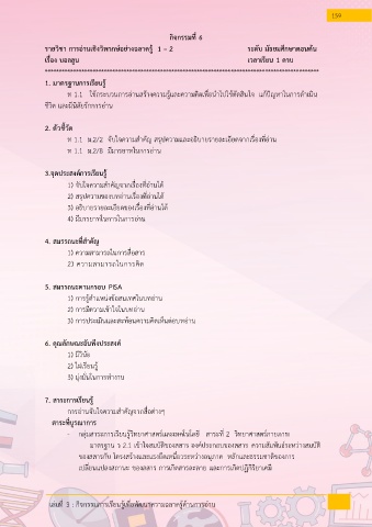 เล่มที่ 3 : กิจกรรมการเรียนรู้เพื่อพัฒนาความฉลาดรู้ด้านการอ่าน 159