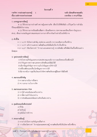 เล่มที่ 3 : กิจกรรมการเรียนรู้เพื่อพัฒนาความฉลาดรู้ด้านการอ่าน 185