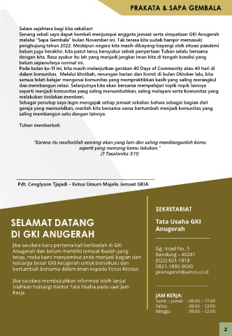 Page 2 - Warta & Buletin Mingguan GKI Anugerah - Vox Gratia (Edisi 48 - 27 November 2022)