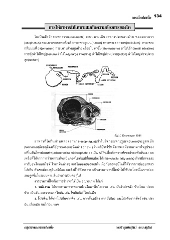 อาหารทีโคกินผ่านหลอดอาหาร(esophagus)เข้าไปในกระเพาะรูเมน(rumen)จะถูกหมัก
