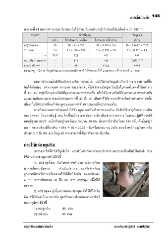 ตารางท 42 ผลการค านวณหาโภชนะเมื่อใช้ร าละเอียดเสริมหญ้ากินนีสดให้แม่โคนาหนัก 350 กก.