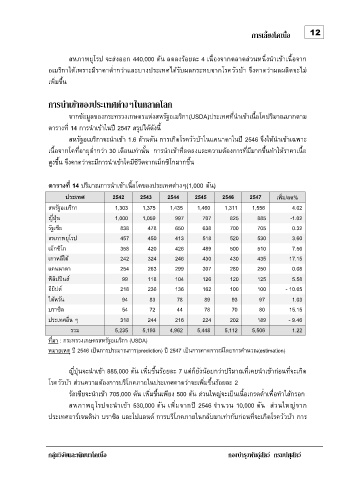 อเมริกาใต้เพราะมีราคาต ากว่าและบางประเทศได้รับผลกระทบจากโรควัวบ้า จึงคาดว่าผลผลิตจะไม ่