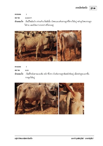 ลักษณะโค เริ่มมีไขมันบ้าง ส่วนท้ายเริ่มมีเนือ ยังพอมองเห็นกระดูกซีโครงได้อยู คล าดูยังพบกระดูก