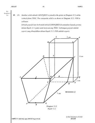 Use 15 (b) Another solid cuboid LMNPQRES is joined to the prism in Diagram 12.1 at the