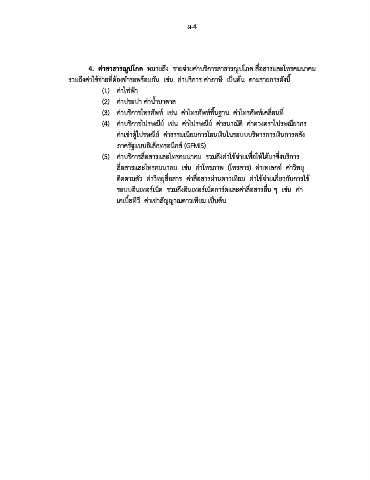 4. ค่าสาธารณูปโภค หมายถึง รายจ่ายค่าบริการสาธารณูปโภค สื่อสารและโทรคมนาคม