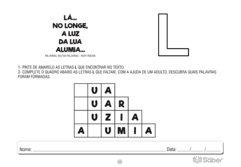 1- PINTE DE AMARELO AS LETRAS L QUE ENCONTRAR NO TEXTO.