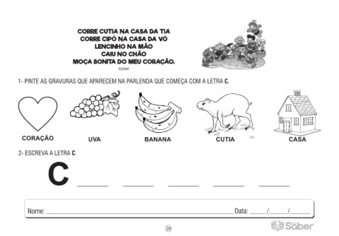 1- PINTE AS GRAVURAS QUE APARECEM NA PARLENDA QUE COMEÇA COM A LETRA C.