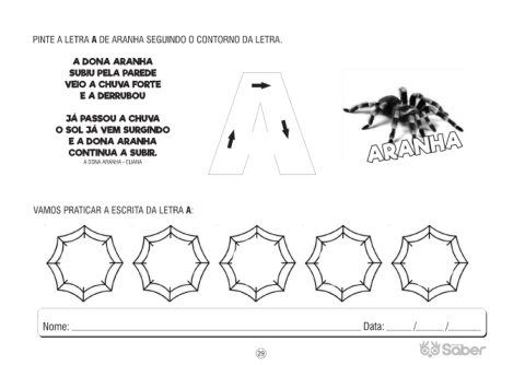 PINTE A LETRA A DE ARANHA SEGUINDO O CONTORNO DA LETRA.