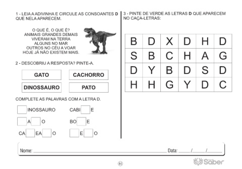 1 - LEIA A ADIVINHA E CIRCULE AS CONSOANTES D 3 - PINTE DE VERDE AS LETRAS D QUE APARECEM