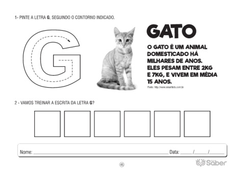 1- PINTE A LETRA G, SEGUINDO O CONTORNO INDICADO.