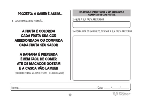 PROJETO: A SABER É ASSIM... ALIMENTAR-SE COM FRUTAS.
