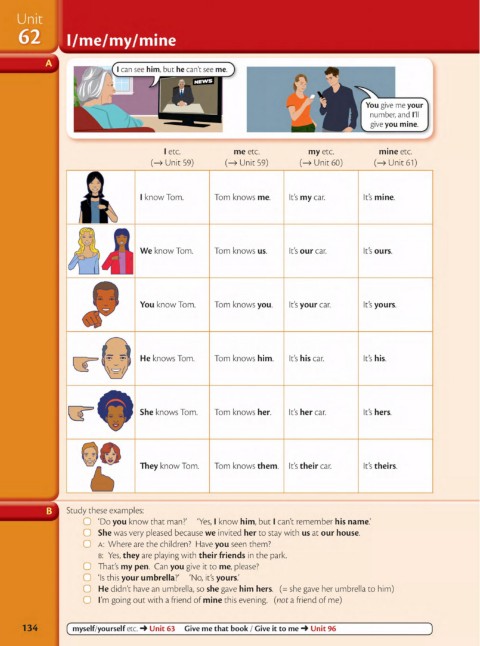 134 ( myself/yourself etc. ➔ Unit 63 Give me that book / Give it to me ➔ Unit 96