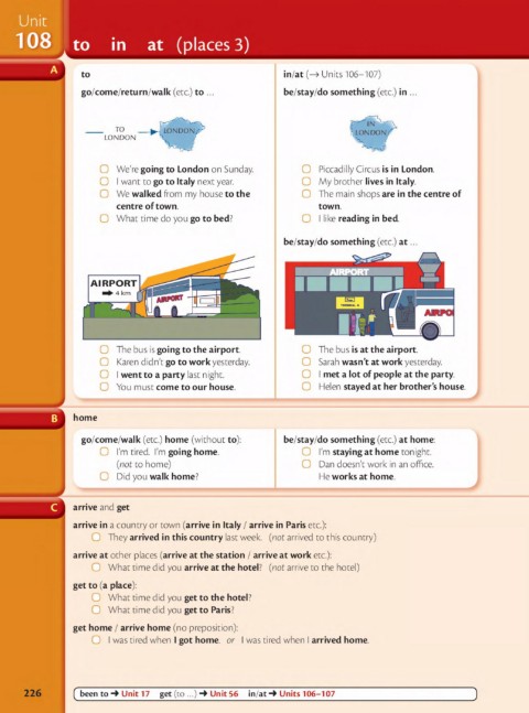 226 ( been to ➔ Unit 17 get (to ... ) ➔ Unit 56 in/at ➔ Units 106-107