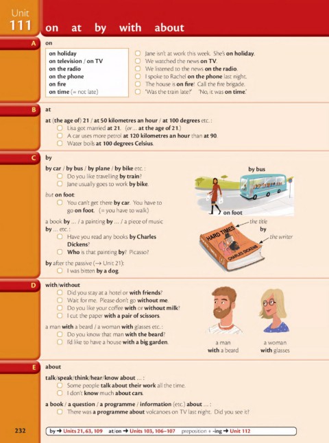 232 ( by ➔ Units 21, 63, 109 at/on ➔ Units 103, 106-107 preposition 十 -ing ➔ Unit 112