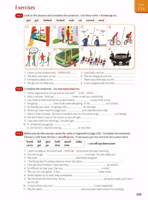 Look at the pictures and complete the sentences. Use these verbs + in/out/up etc.