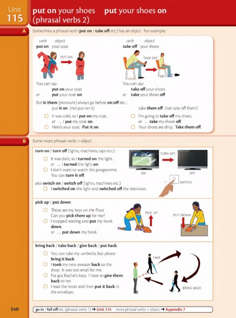 240 ( go in / fall offetc. (phrasal verbs 1) ➔ Unit 114 more phrasal verbs + object ➔ Appendix 7