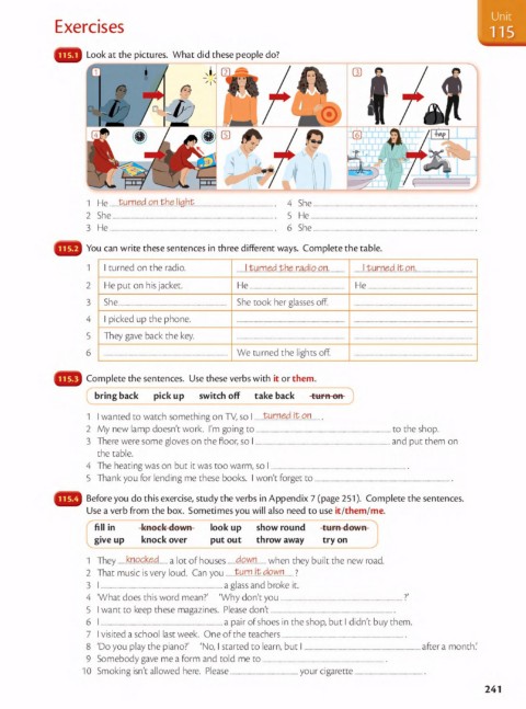 Before you do this exercise, study the verbs in Appendix 7 (page 251 ). Complete the sentences.