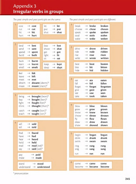 spend ➔ spent get ➔ got ride rode ridden