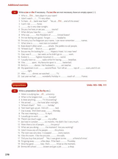 • Write a/an or the if necessary. If a/an/the are not necessary, leave an empty space (-).