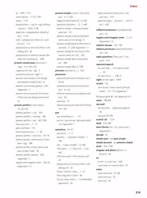 prepositions 十 -ing (in -ing /without questions (do/does ... ?) 7, 44B etc.) 41 B