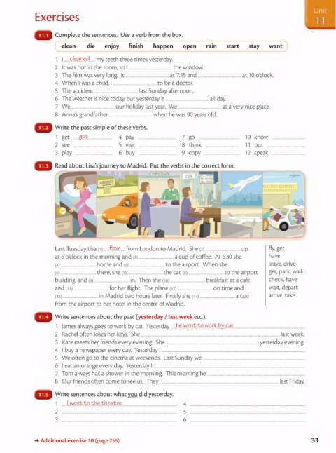 Last Tuesday Lisa (1) ... …ft.?..W. ...... from London to Madrid. She (2) .……·····……………………. up Ay, get